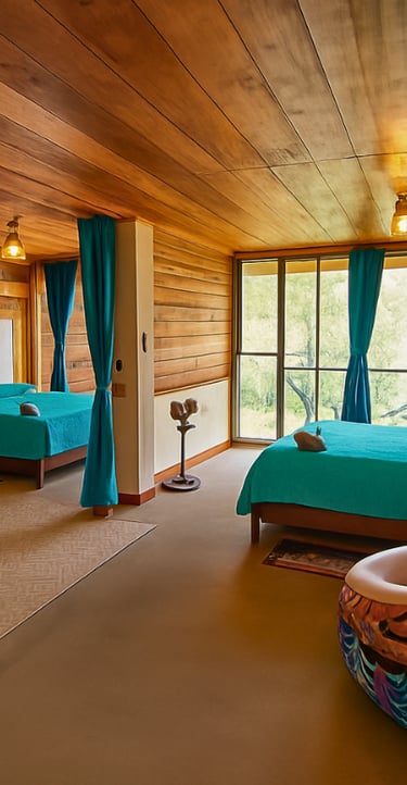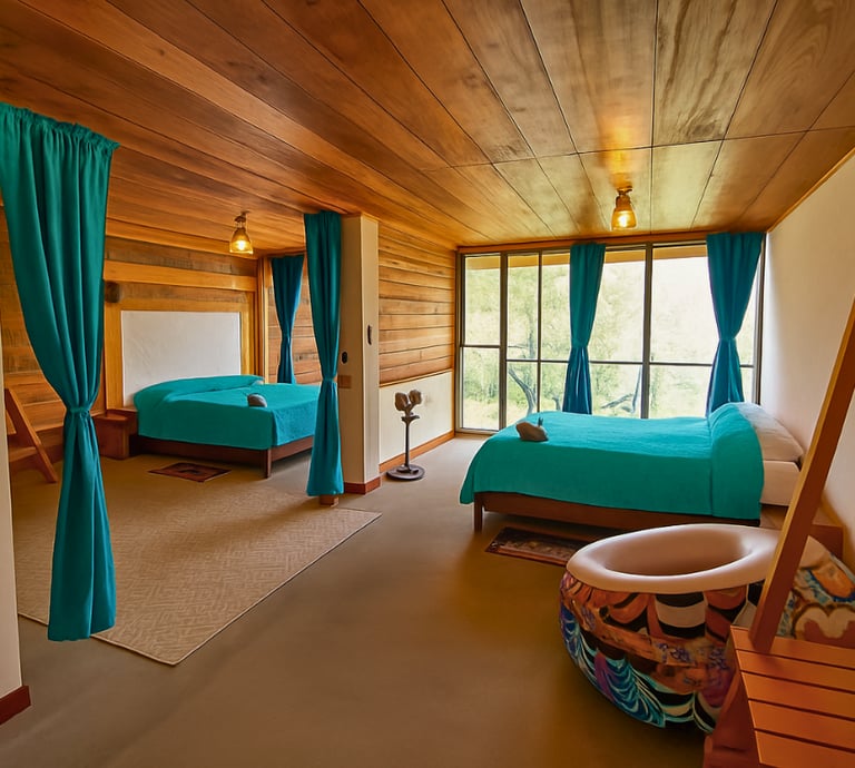Our 50 m² quadruple room offers a spacious, comfortable setting with a private bathroom and a private balcony overlooking a peaceful, green landscape. Ideal for a family or a group of travelers.